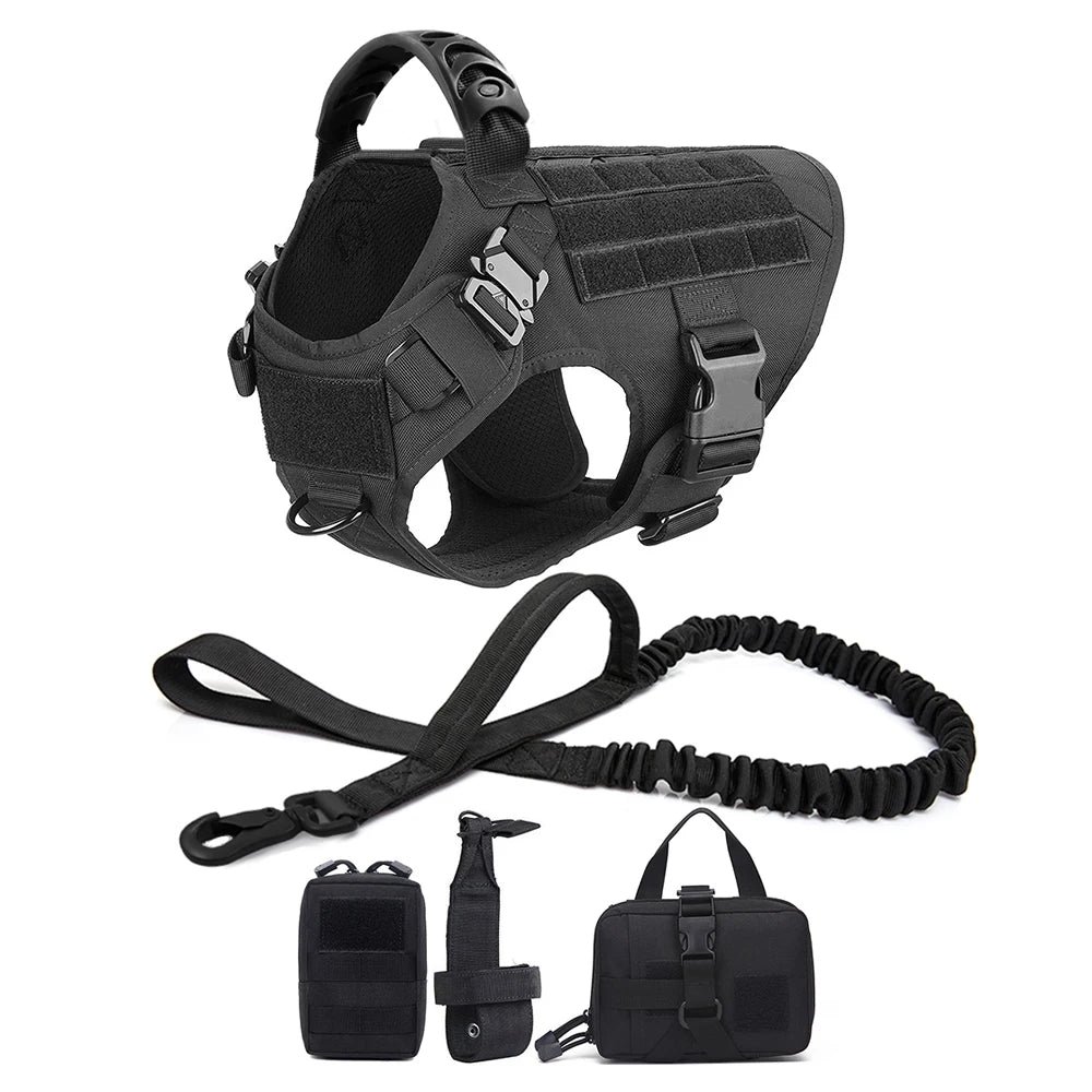 K9 Military Dog Harness Leash Bags Set, Vest Harnesses Walking Training Hunting, For Large Dogs German Shepherd