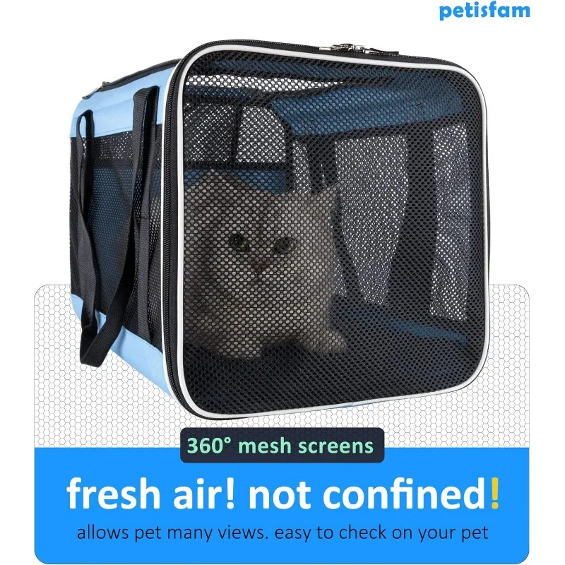 - 360° mesh screens: Great visibility for cats to see out and get fresh air. Cats will feel secure being able to see out every side, especially for cat hates being confined