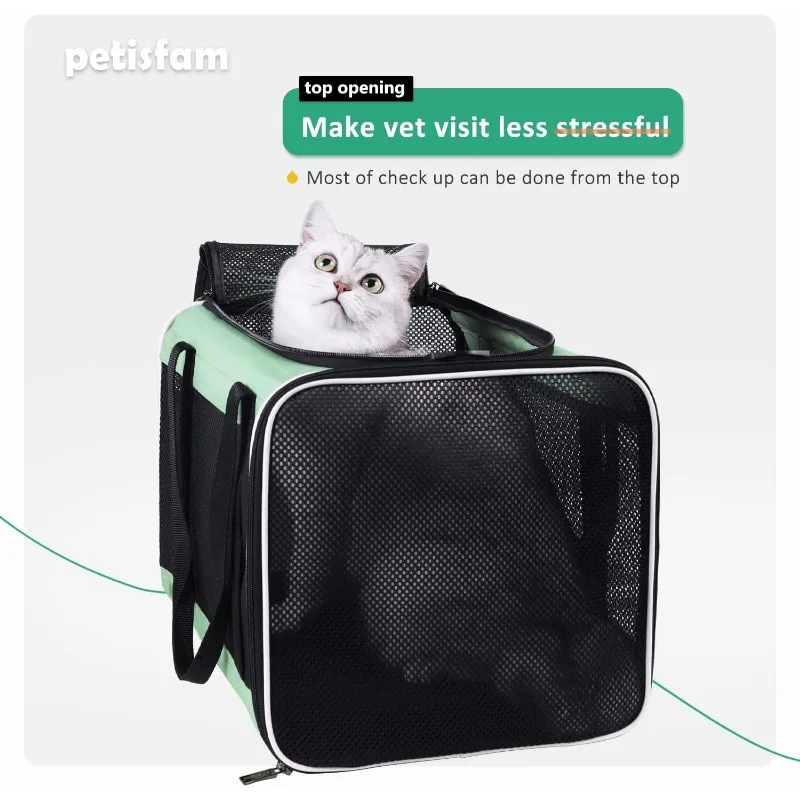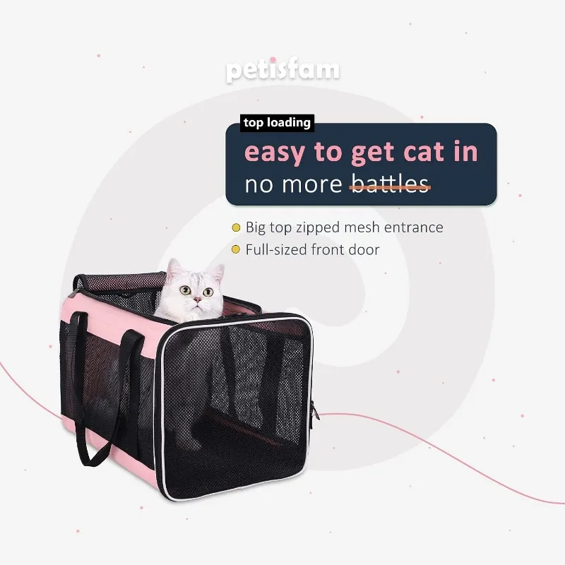 - Easier to get cat in. The full-sized top entrance makes it a breeze to put an uncooperate cat into it
