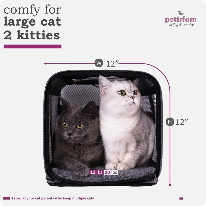 Soft Pet Carrier, Large- Medium Cats, Small Dogs. Easy to Get in, Great for Cats That Don’t Like Carriers